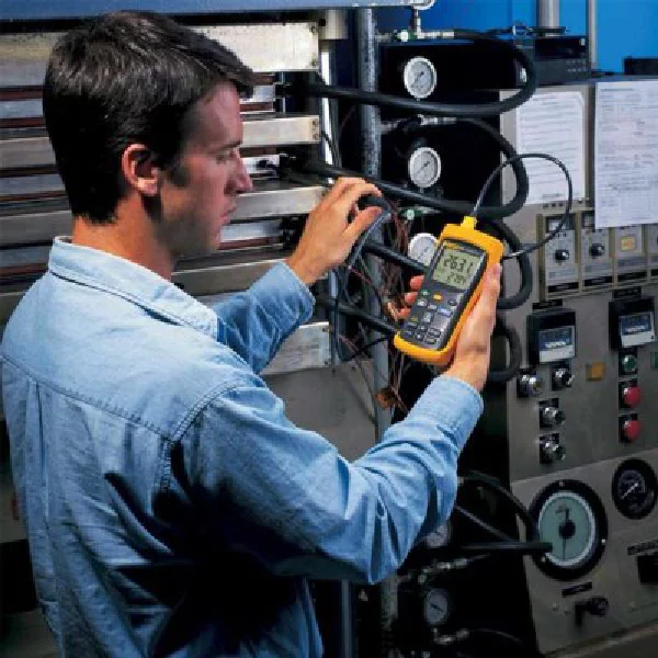 Fluke 54 II B dual input digital thermometer can log up to 500 points of data to internal memory. Fast response and laboratory accuracy (0.05% + 0.3 °C). Take contact temperature for checking motors, insulation, breakers, pipes, corroded connections, liquids, and wires with industrial standard J, K, T, E, N, R, and S type thermocouple (temperature sensors).